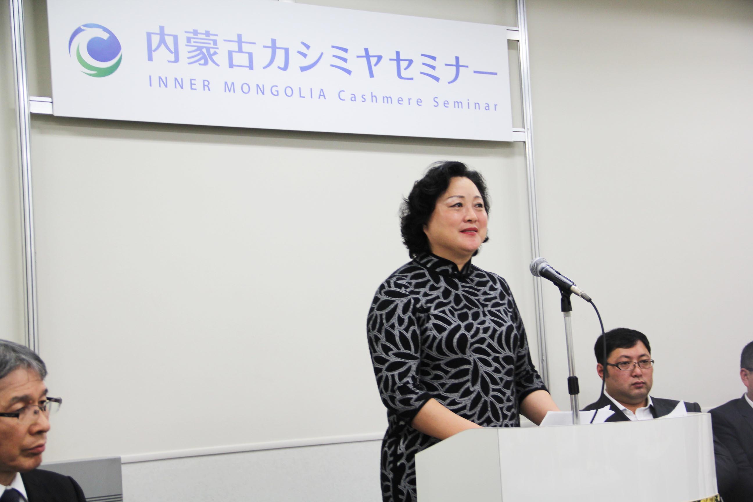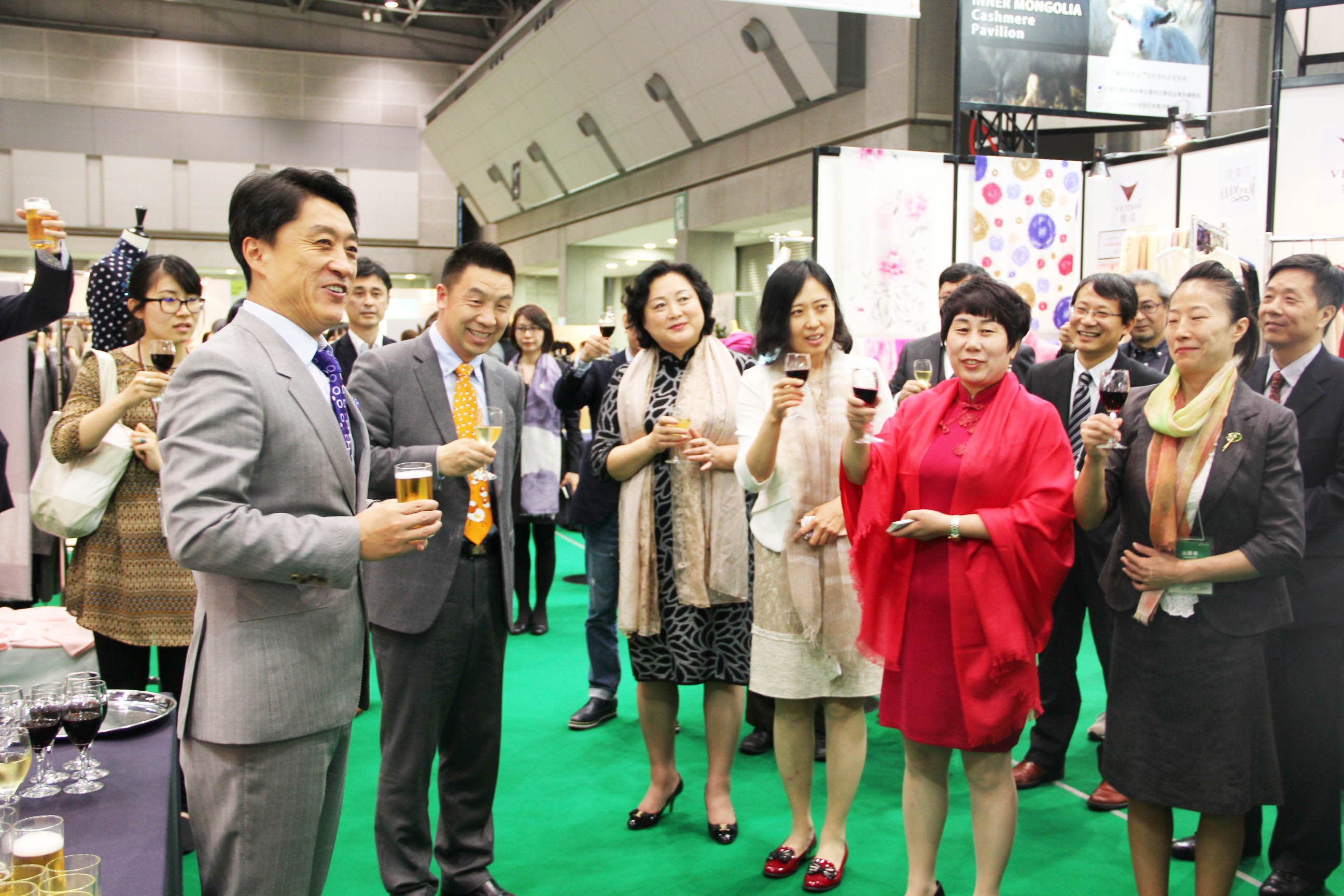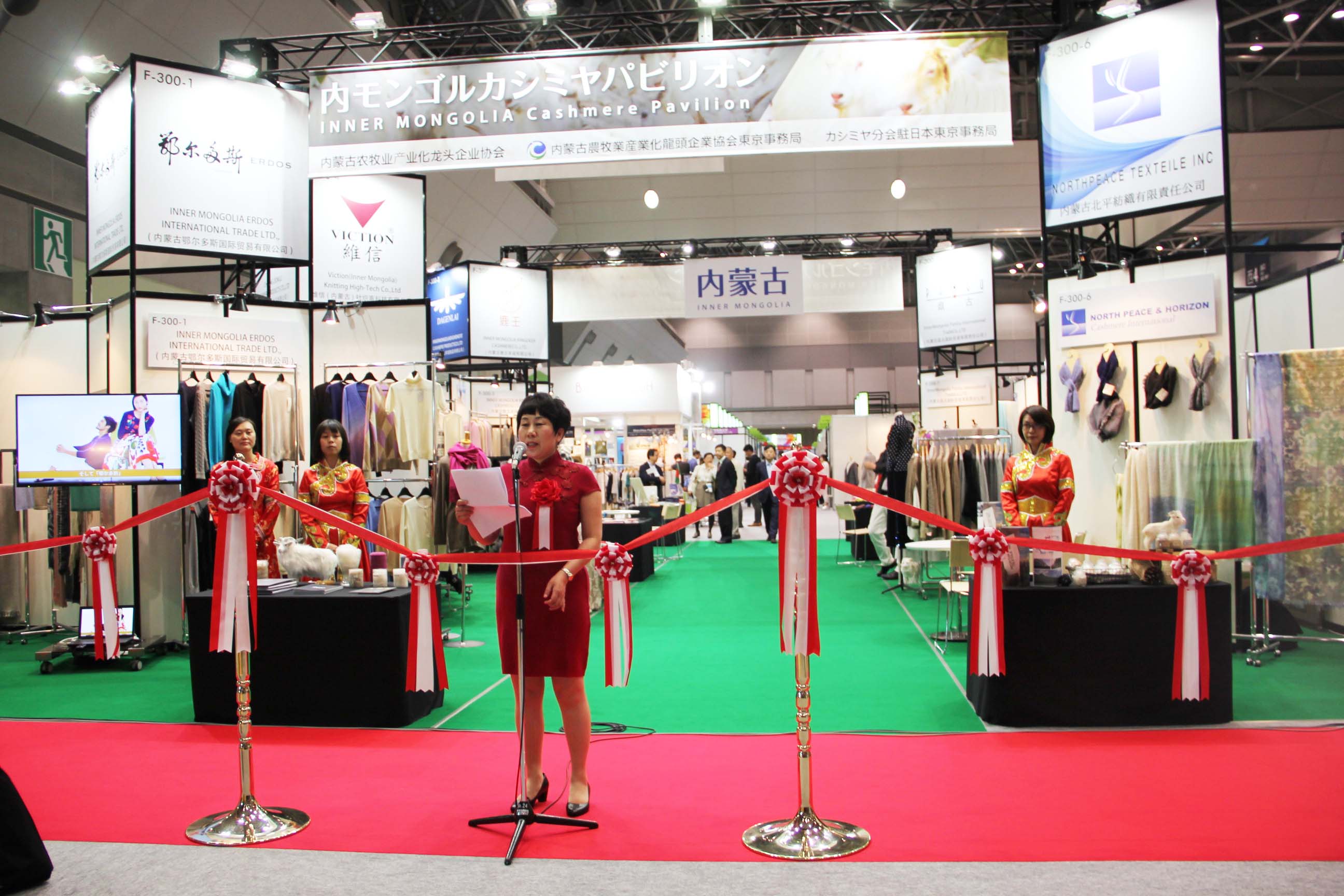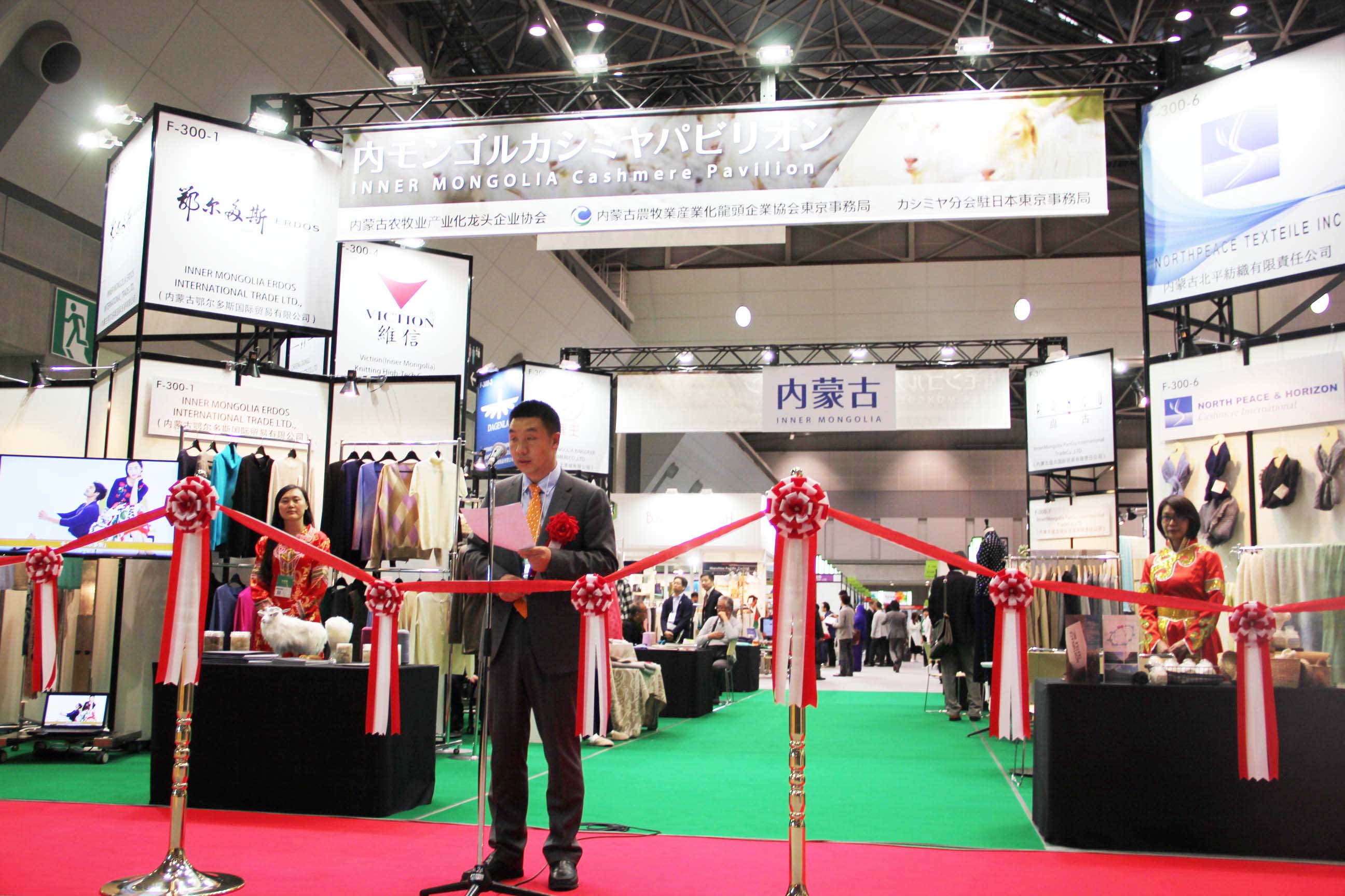 2016426日上午11時(shí),在內(nèi)蒙古羊絨展區(qū)前,舉行了盛大的開業(yè)剪彩儀式,內(nèi)蒙古自治農(nóng)牧業(yè)廳產(chǎn)業(yè)化處副處長郟金梅、內(nèi)蒙古農(nóng)牧產(chǎn)業(yè)化龍頭企業(yè)協(xié)會會長閆樹春、內(nèi)蒙古農(nóng)牧產(chǎn)業(yè)化龍頭企業(yè)協(xié)會羊絨產(chǎn)業(yè)分會會長王風(fēng)之出席剪彩儀式,并分別就政府支持、協(xié)會服務(wù)和企業(yè)自律發(fā)展等幾方面做了精彩致辭。郟金梅副處長表示,希望通過此次活動,使得社會各界代表能夠贏得機(jī)遇、拓展空間,取得豐碩的成果,同時(shí)真誠盼望各方來賓、新老朋友能夠進(jìn)一步了解內(nèi)蒙古羊絨,認(rèn)識內(nèi)蒙古羊絨,并以此為契機(jī),加強(qiáng)內(nèi)蒙古羊絨界與日本企業(yè)的合作,攜手發(fā)展,實(shí)現(xiàn)共贏,共創(chuàng)輝煌。閆樹春會長在致辭中講到,我們此行不僅是要展示內(nèi)蒙古羊絨原料優(yōu)勢地位和行業(yè)加工的專業(yè)性,更希望能充分利用各個(gè)平臺廣泛交流,探討合作途徑的契合點(diǎn),推動兩國羊絨行業(yè)多方共贏,共同提升全球市場對羊絨產(chǎn)品的認(rèn)知度,希望我們的羊絨企業(yè)能團(tuán)結(jié)一致,實(shí)現(xiàn)羊絨產(chǎn)業(yè)的可持續(xù)發(fā)展。羊絨產(chǎn)業(yè)分會會長王風(fēng)之在致辭中表示,通過內(nèi)蒙古農(nóng)牧業(yè)產(chǎn)業(yè)化龍頭企業(yè)協(xié)會羊絨分會的平臺,我們勢必會在培育超細(xì)超長型產(chǎn)絨山羊、提升優(yōu)質(zhì)種群的規(guī)模、建立行業(yè)質(zhì)量標(biāo)準(zhǔn)和抱團(tuán)發(fā)展,積極進(jìn)行海外市場渠道、品牌、投資等多方面取得突破性進(jìn)展,致力于將中國內(nèi)蒙古羊絨打造成為全球性的產(chǎn)業(yè)品牌。