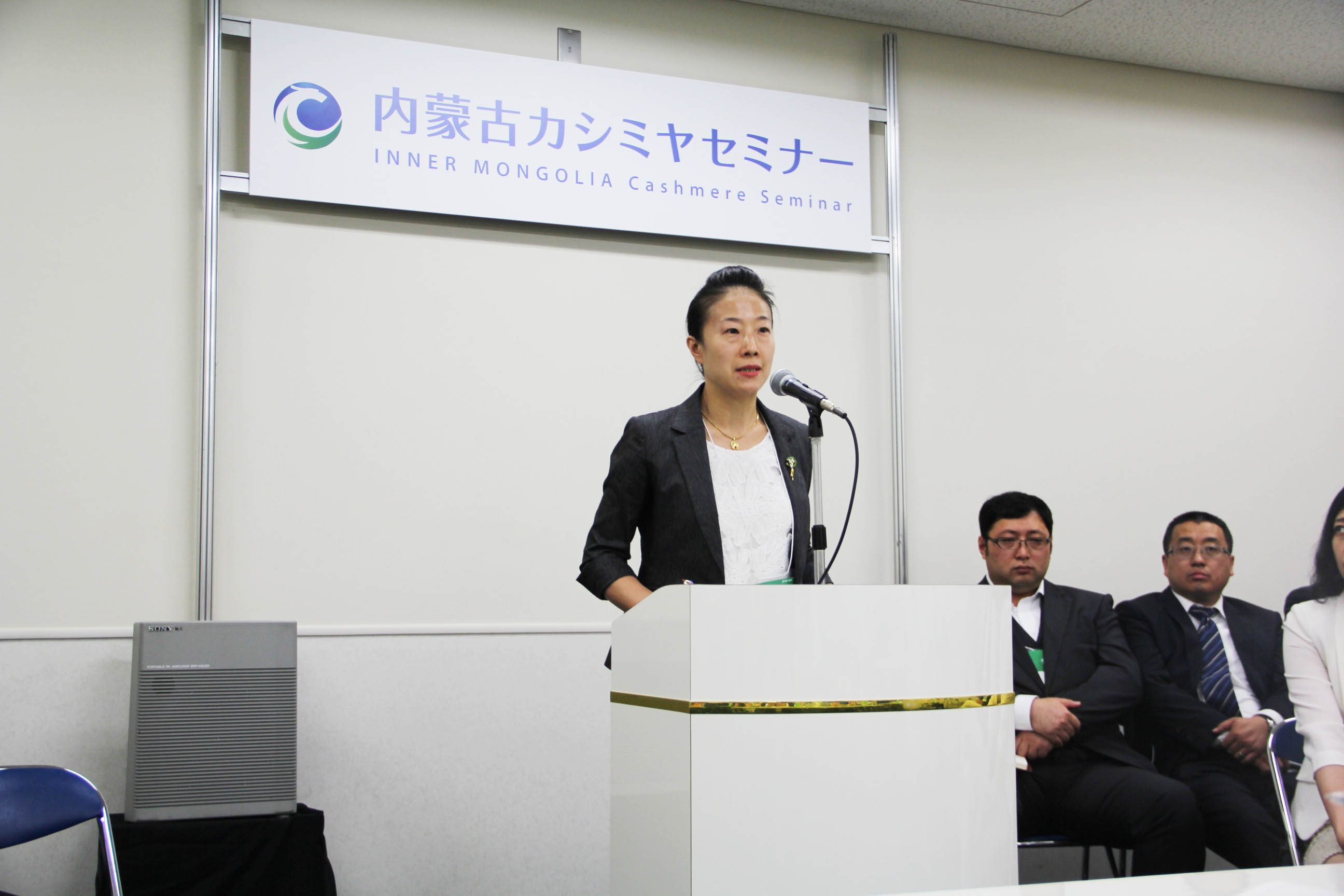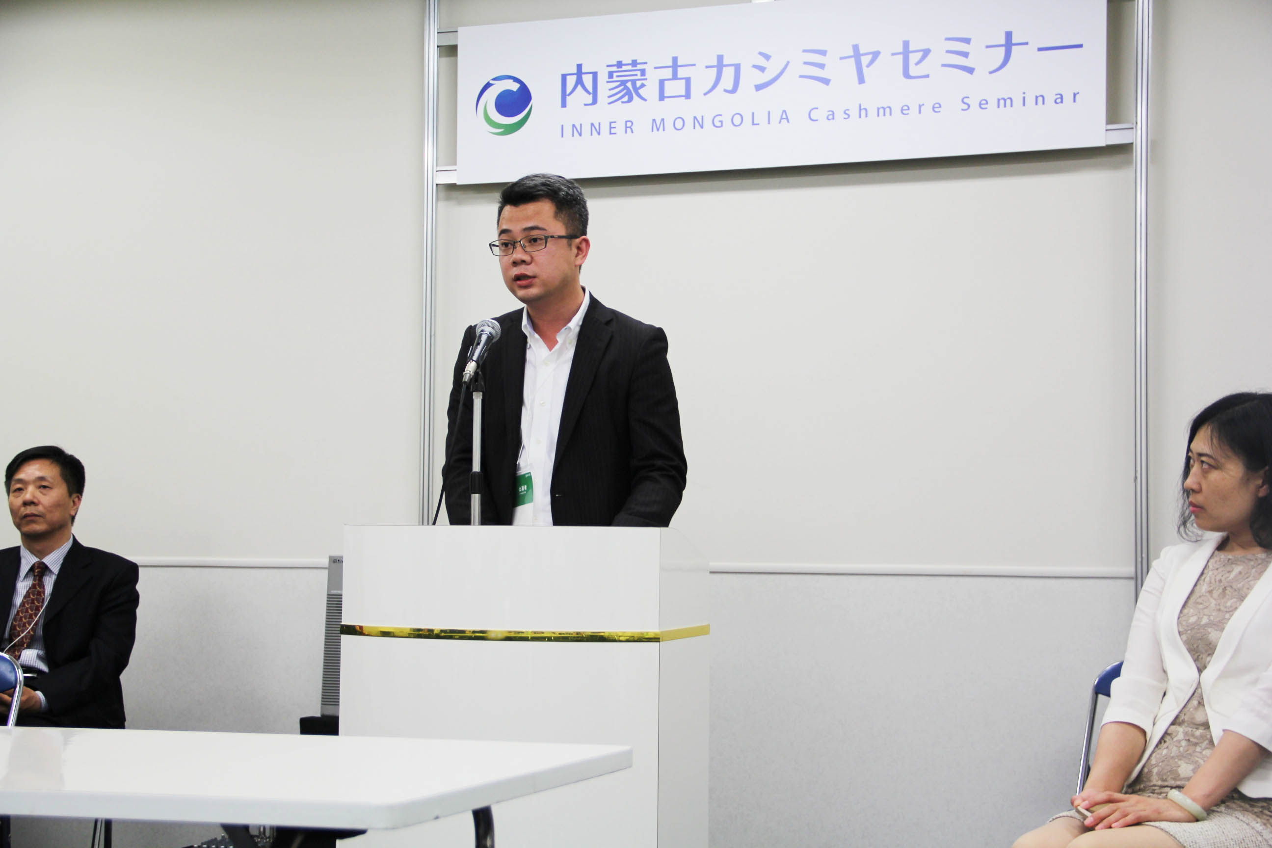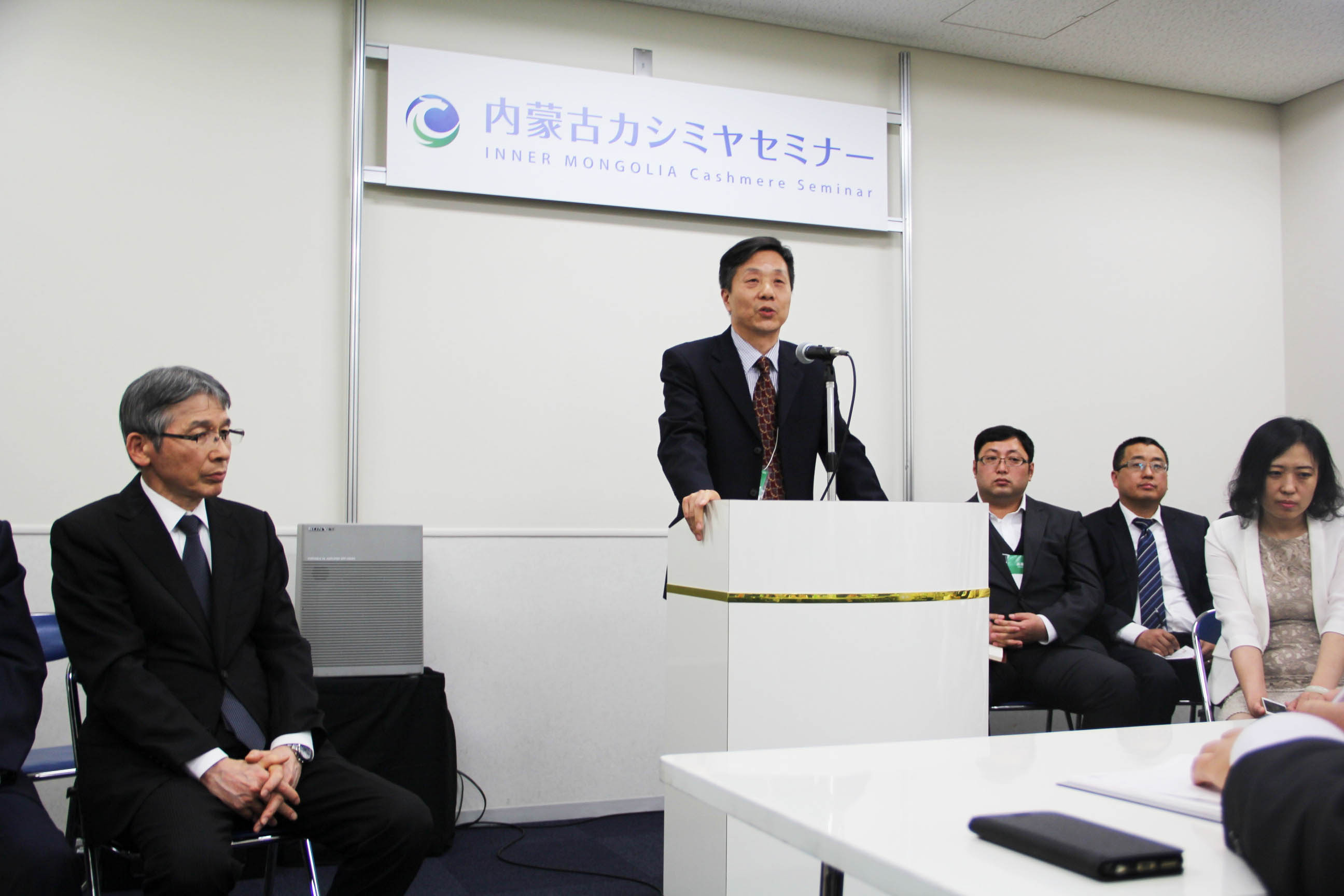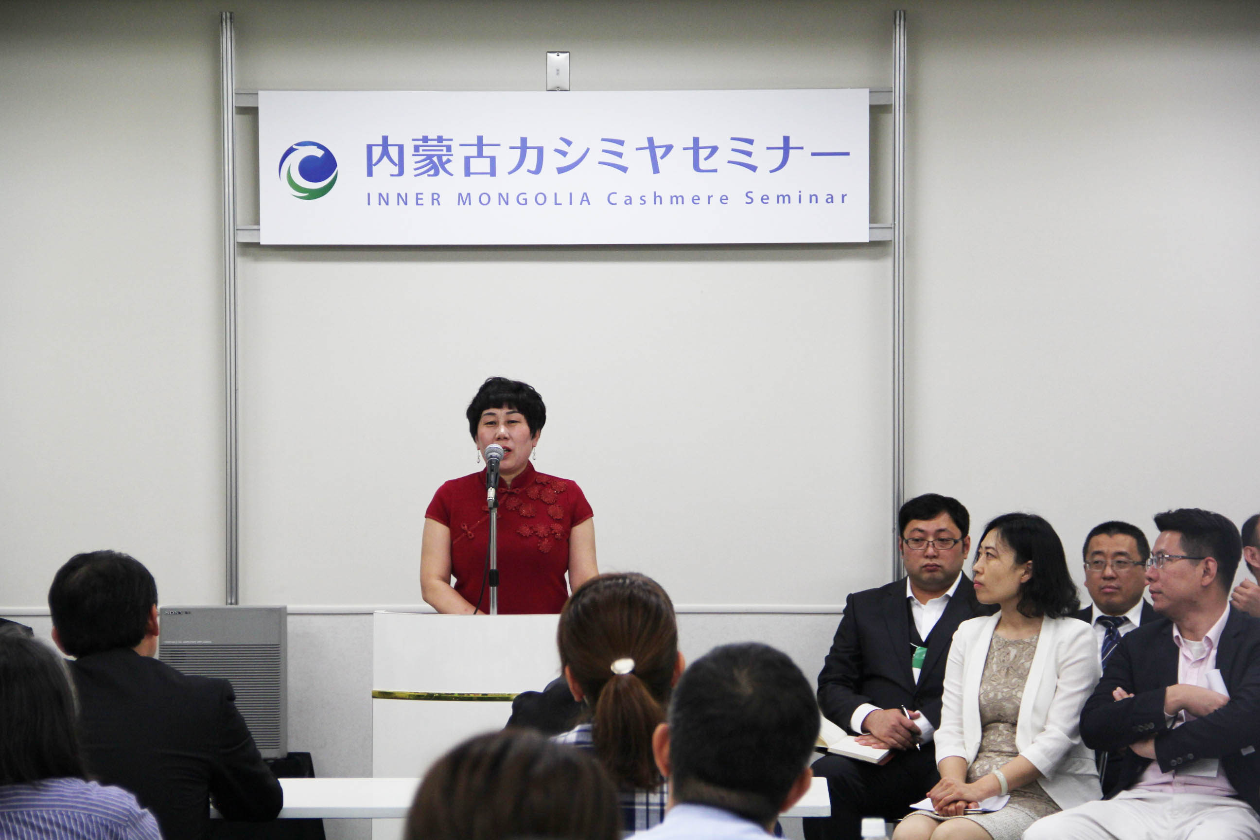 2016426日上午11時(shí),在內(nèi)蒙古羊絨展區(qū)前,舉行了盛大的開業(yè)剪彩儀式,內(nèi)蒙古自治農(nóng)牧業(yè)廳產(chǎn)業(yè)化處副處長郟金梅、內(nèi)蒙古農(nóng)牧產(chǎn)業(yè)化龍頭企業(yè)協(xié)會會長閆樹春、內(nèi)蒙古農(nóng)牧產(chǎn)業(yè)化龍頭企業(yè)協(xié)會羊絨產(chǎn)業(yè)分會會長王風(fēng)之出席剪彩儀式,并分別就政府支持、協(xié)會服務(wù)和企業(yè)自律發(fā)展等幾方面做了精彩致辭。郟金梅副處長表示,希望通過此次活動,使得社會各界代表能夠贏得機(jī)遇、拓展空間,取得豐碩的成果,同時(shí)真誠盼望各方來賓、新老朋友能夠進(jìn)一步了解內(nèi)蒙古羊絨,認(rèn)識內(nèi)蒙古羊絨,并以此為契機(jī),加強(qiáng)內(nèi)蒙古羊絨界與日本企業(yè)的合作,攜手發(fā)展,實(shí)現(xiàn)共贏,共創(chuàng)輝煌。閆樹春會長在致辭中講到,我們此行不僅是要展示內(nèi)蒙古羊絨原料優(yōu)勢地位和行業(yè)加工的專業(yè)性,更希望能充分利用各個(gè)平臺廣泛交流,探討合作途徑的契合點(diǎn),推動兩國羊絨行業(yè)多方共贏,共同提升全球市場對羊絨產(chǎn)品的認(rèn)知度,希望我們的羊絨企業(yè)能團(tuán)結(jié)一致,實(shí)現(xiàn)羊絨產(chǎn)業(yè)的可持續(xù)發(fā)展。羊絨產(chǎn)業(yè)分會會長王風(fēng)之在致辭中表示,通過內(nèi)蒙古農(nóng)牧業(yè)產(chǎn)業(yè)化龍頭企業(yè)協(xié)會羊絨分會的平臺,我們勢必會在培育超細(xì)超長型產(chǎn)絨山羊、提升優(yōu)質(zhì)種群的規(guī)模、建立行業(yè)質(zhì)量標(biāo)準(zhǔn)和抱團(tuán)發(fā)展,積極進(jìn)行海外市場渠道、品牌、投資等多方面取得突破性進(jìn)展,致力于將中國內(nèi)蒙古羊絨打造成為全球性的產(chǎn)業(yè)品牌。