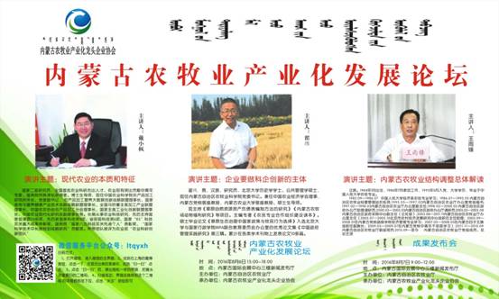 綠博會期間,由自治區(qū)農(nóng)牧業(yè)廳主辦、內(nèi)蒙古農(nóng)牧業(yè)產(chǎn)業(yè)化龍頭企業(yè)協(xié)會承辦的內(nèi)蒙古農(nóng)牧業(yè)產(chǎn)業(yè)化發(fā)展論壇如期舉行。論壇旨在推動現(xiàn)代農(nóng)牧業(yè)發(fā)展方式轉(zhuǎn)變,聚焦農(nóng)牧業(yè)供給側(cè)結(jié)構(gòu)性改革和互聯(lián)網(wǎng)+發(fā)展思路,邀請區(qū)內(nèi)外農(nóng)牧業(yè)領域知名專家和學者現(xiàn)場傳授,共同探討,共享綠博會成果,共商產(chǎn)業(yè)發(fā)展大計。論壇同期發(fā)布第四屆內(nèi)蒙古名優(yōu)特農(nóng)畜產(chǎn)品和第三屆包裝設計大賽評審結(jié)果,內(nèi)蒙古日報、農(nóng)民日報82日第四版同時公布獲獎名單,敬請關注。