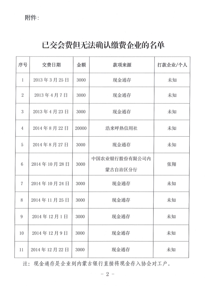 關(guān)于公布協(xié)會部分已交會費(fèi)但無法確認(rèn)繳費(fèi)企業(yè)的名單的通知