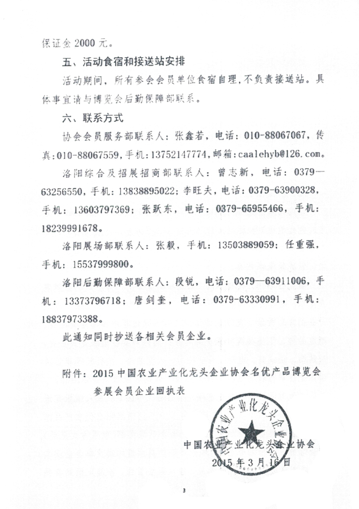 關(guān)于舉辦2015年中國農(nóng)業(yè)產(chǎn)業(yè)化龍頭企業(yè)協(xié)會(huì)名優(yōu)產(chǎn)品博覽會(huì)的通知