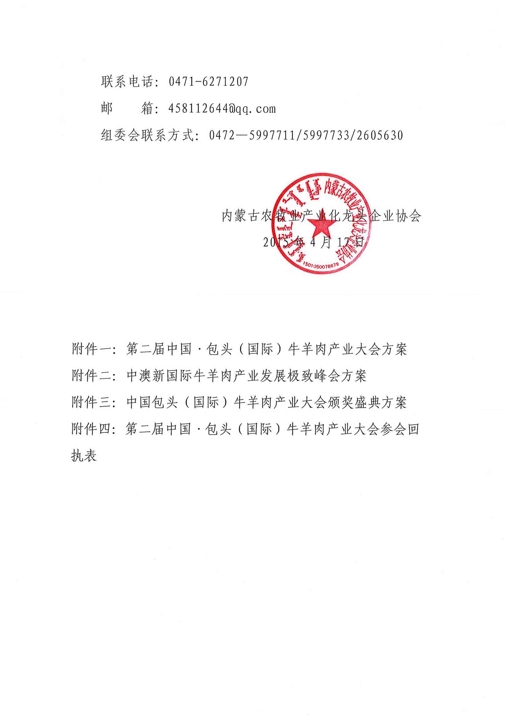 第二屆中國·包頭(國際)牛羊肉產業(yè)大會參會回執(zhí)表
