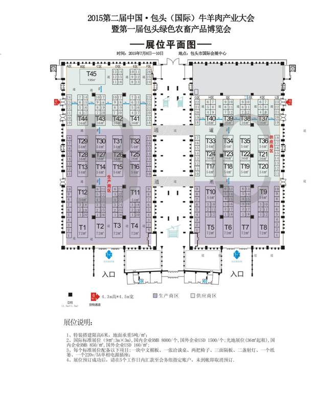 根據規(guī)劃,展館占地面積為10664平米。其中B館占地面積為5832平米可供搭建標準展位(3mX3m256個,主要以國內外牛羊肉生產加工企業(yè)、生產加工設備、包裝技術、冷鏈服務、各地區(qū)集體參展、獸醫(yī)獸藥、圈舍舍建設、飼草、金融服務機構、品牌營銷機構等企業(yè)為主導。C館占地面積4832平米,可供搭建標準展位(3mX3m229個,主要以包頭市轄內各農牧業(yè)企業(yè)等參展單位為主。